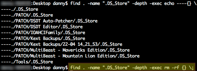 find / -name ".DS_Store" -depth -exec echo ----{} \;