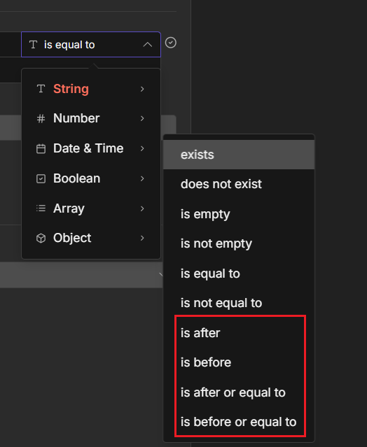 • **Date & Time **:才有 is after(超過時間)