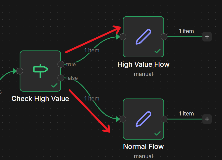 這是最直覺的邏輯。滿足條件走 true 線,不滿足走 false 線。 - 場景:如果金額 > 1000 走審核線,否則直接結案。If 會有2個輸出,1個是true 線另一個是false