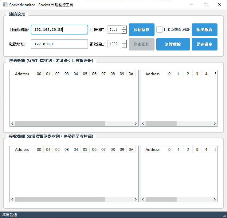- Set the target server address and port