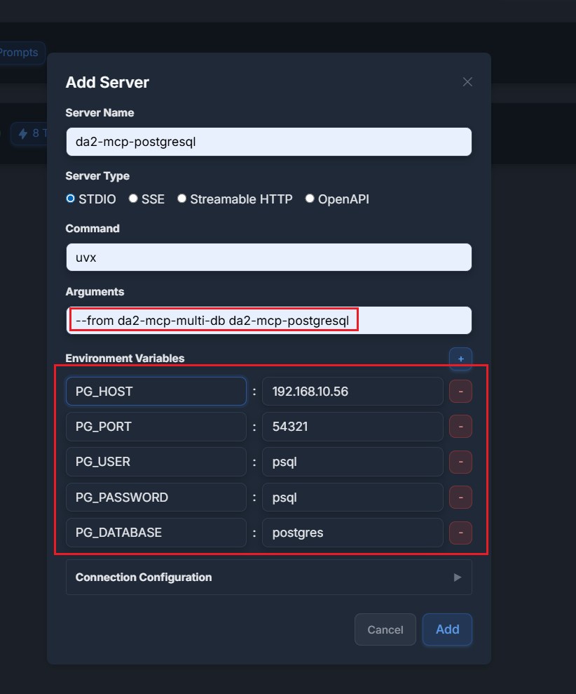 最近完成mcp server程式 da2-mcp-multi-db —— 能夠操作 PostgreSQL 與 MySQL 資料庫。