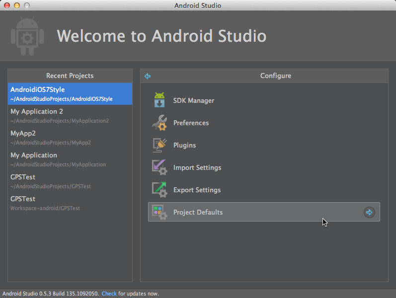 選擇Project Defaults