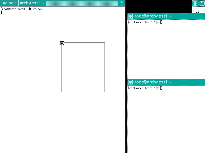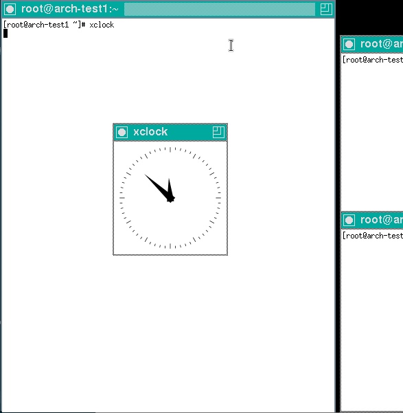 這裡主要的是安裝xorg-twm,它是個視窗管理員,負責最基本的X視窗的管理,xterm為在X視窗中的終端機軟體,xorg-xclock是一支簡易的X時鐘應用程式,安裝完成後會使用它。