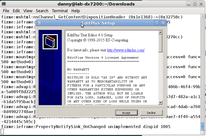 安裝完成後一些設定會自動完成,此時可以直接任意點擊Widnows執行檔*.exe就會利用wine執行此程式,也能用手動方式執行: