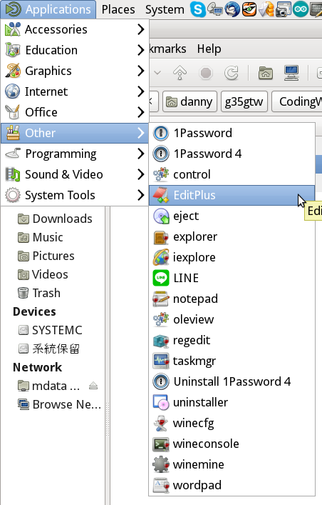 進行一連串的安裝後,Wine也會自行產生可執行的連結: