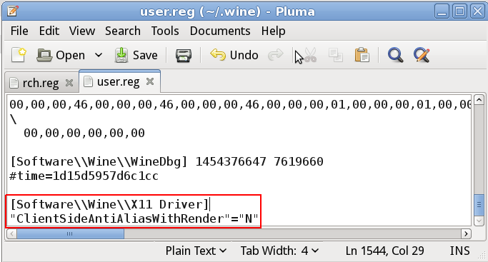一樣將它加入~/.wine/user.reg之中就能發揮效果: