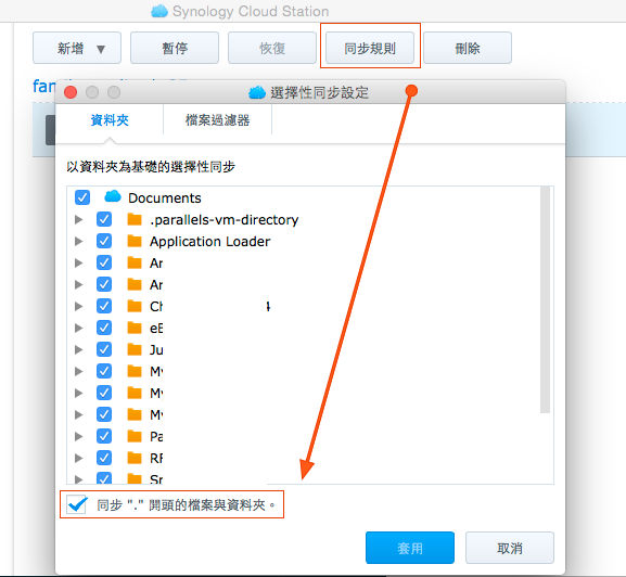 所以使用Cloud Station時要記得將同步規則中的同步.開頭的檔案與資料夾選項打勾: