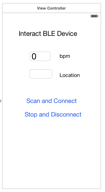 NSLog對於心跳測量資訊能正確顯示後,我們要將範例增加顯示資訊,這裡利用UITextField進行顯示,以下為Storyboard的配置: