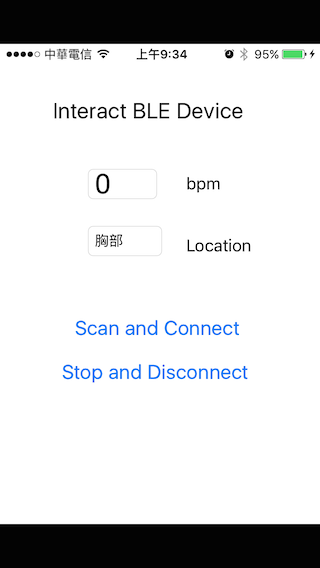 此次要連接的依然是Polar H7心跳表示範,連線成功後按下Scan and Connect後會自行找到周邊後自行連線。