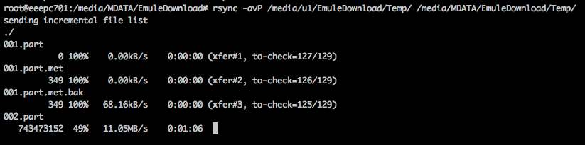 Linux下使用cp指令拷貝檔案時,往往都會不確定檔案在何時拷貝完成或是狀態如何?如何時使才能像Windows一樣有類似的狀態顯示?如果只靠cp的指令參數是無法達成的,下面的列子是利用rsync功能完成的方法: