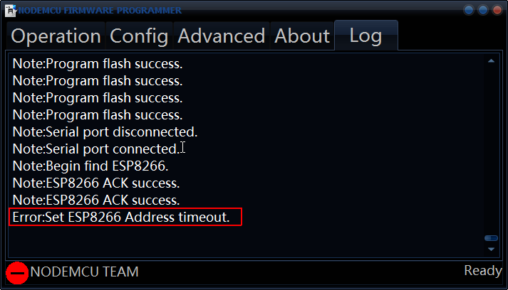 選擇好檔案後再回到Operation頁面按下Flash開始升級韌體,要記得進入UART0啟動(升級模式)。