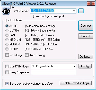 要操作VNC之前必需要手動的將VM啟動,之後透過VNC Client並將位址設定為ESXi Server再加上指定的Port或display number,