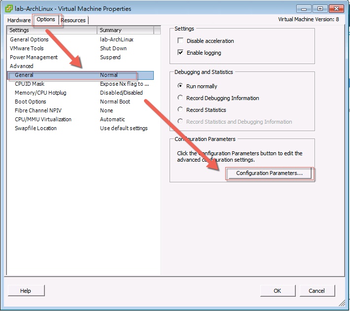 這裡要透過手動的方式進行設定參數的增加,啟動VNC的參數如下: