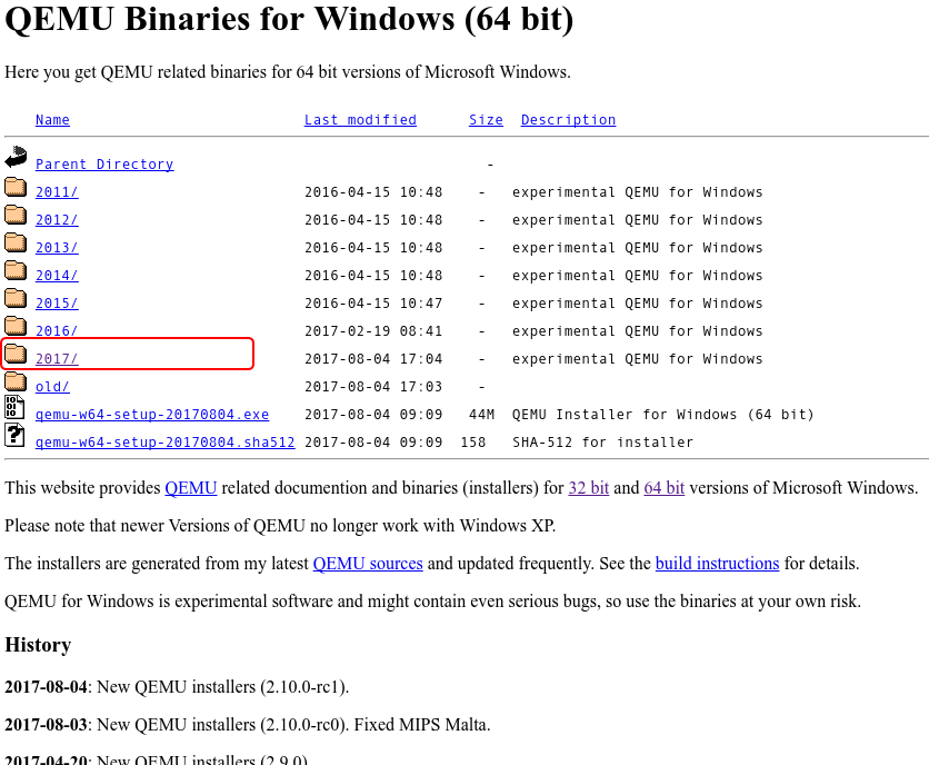 依照你目前的時間選擇最新的年份,進入此年份目錄後並找尋離你時間最近版本進行下載