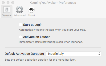 你可以透過Activate for Duration設定要防止睡眠多久,這有幾個選項,其中Indefinitely代表是持續防止睡眠.