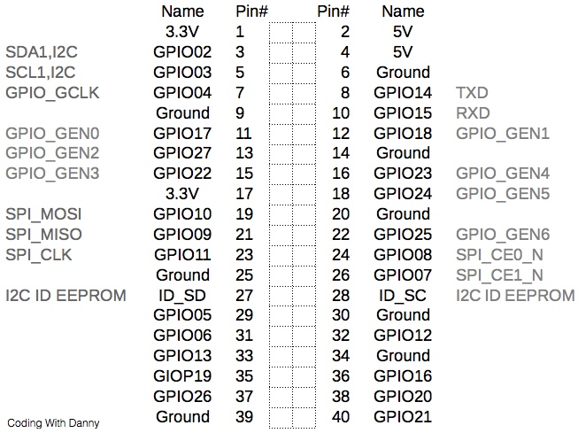 從開發板:Raspberry Pi B+文中能了解到B+版本與之前版本的差異,接下來就是與實作有關的接腳圖。